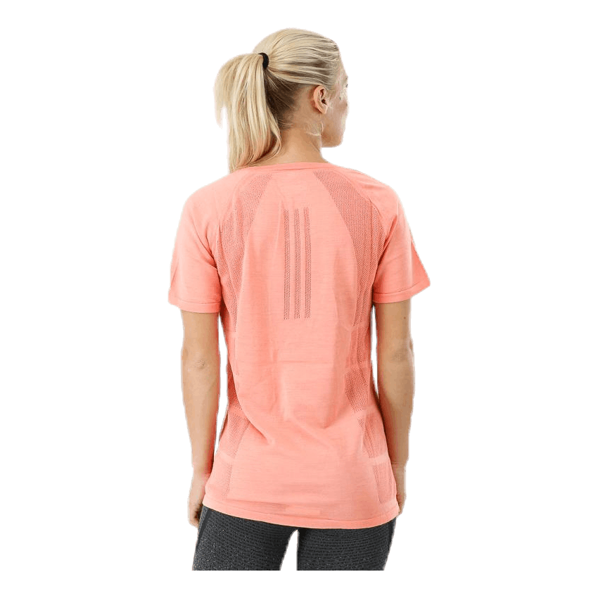 Denne t-skjorten for løping er laget av en strikket ullblanding som er myk, ventilerende og fjerner fuktighet for optimal komfort. T-skjorten har en sømløs konstruksjon som minimerer slitasje. Fuktighetshåndtering Climalite fjerner svette for å holde deg tørr under alle forhold og med en teknologi som fjerner vond lukt. 360-graders reflekser gjør deg synlig!
