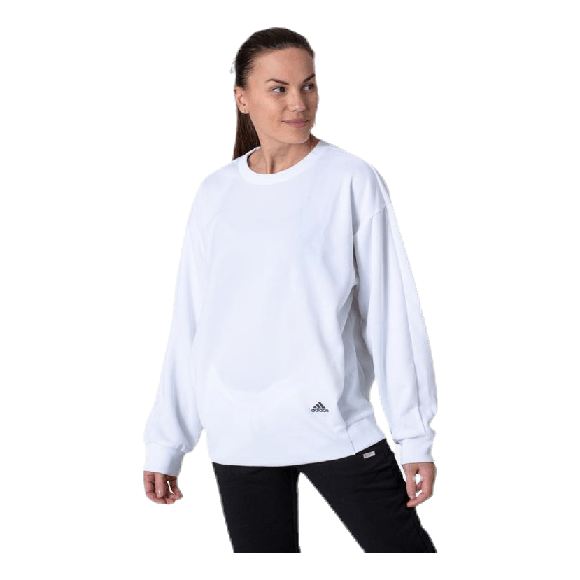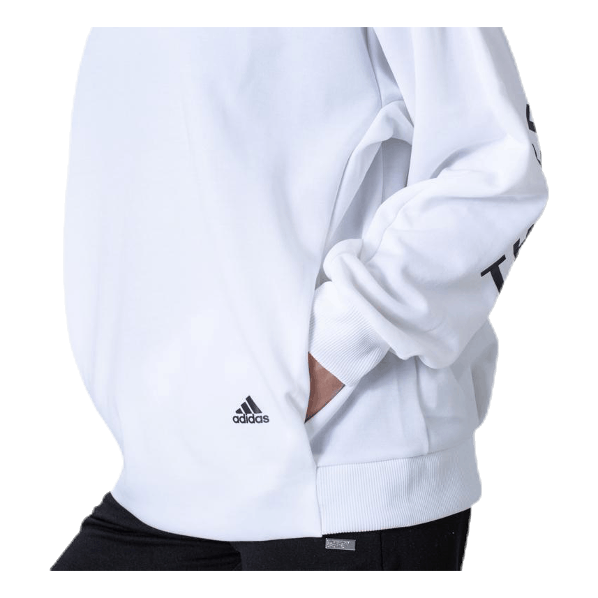 Slip på denne adidas-sweatshirt som en cover-up etter treningsstudio, eller bruk den på egen hånd. Det avslappede snittet gir det en løs, drapete følelse. På baksiden løper «Three Stripes» -utrop fra erme til erme.