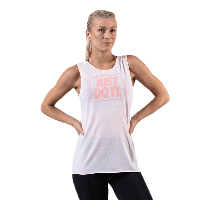 Nike Dri-FIT treningstank for kvinner er laget av fukttransporterende materiale med en avslappet profil for å holde deg tørr og komfortabel og gi deg bevegelsesfrihet gjennom hele treningen.