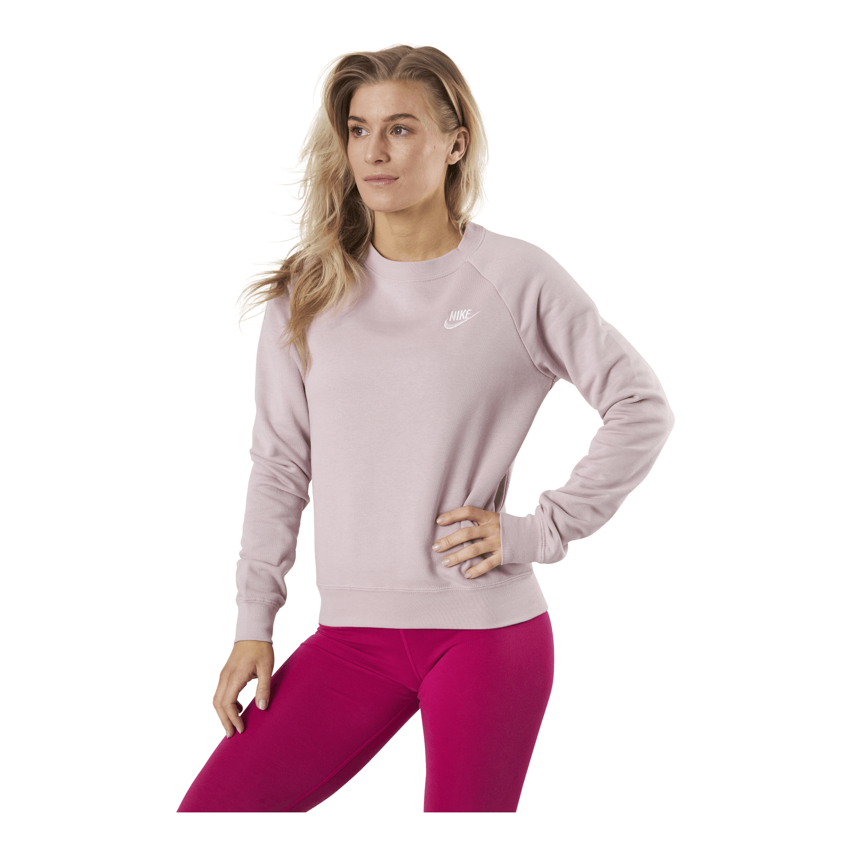 Nike Sportswear Essential Women's Fleece Crew oppdaterer den klassiske komforten til det halvbørste fleece-stoffet med raglan-ermer og ribbestrikkede detaljer.