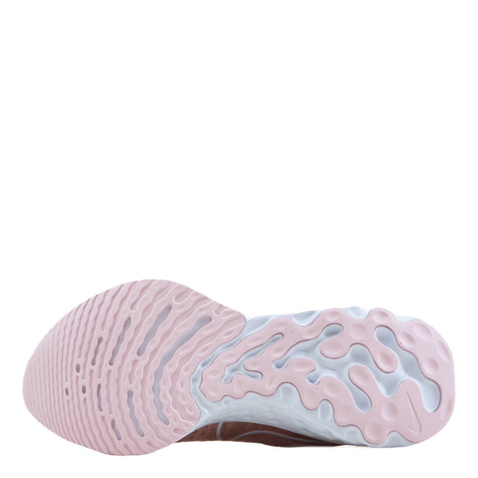 - Nike React-teknologien er et lett, slitesterkt skum som gir en jevn, responsiv tur. Skummet er formet som en rocker og gir støtte for de 3 fasene av en løpers skritt. Den gir fleksibilitet når foten reiser seg fra bakken, en jevn tur når foten beveger seg fremover og demping ved bakkekontakt.