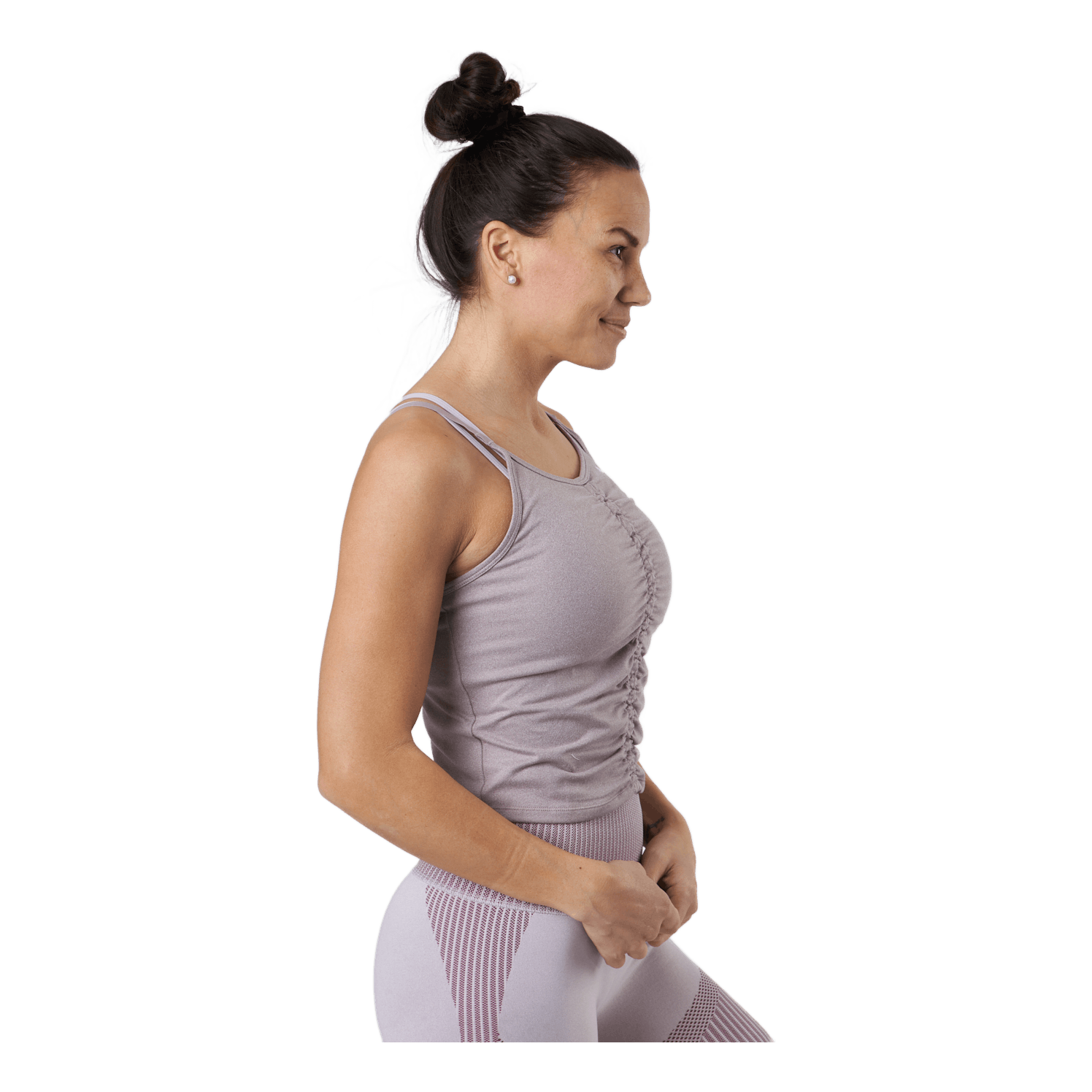 Hennes nye gå til tank inn og ut av studioet. Laget i supermykt Yogini-materiale med små ruching-treff, disse foundationdelene ser bra ut blandet og matchet
